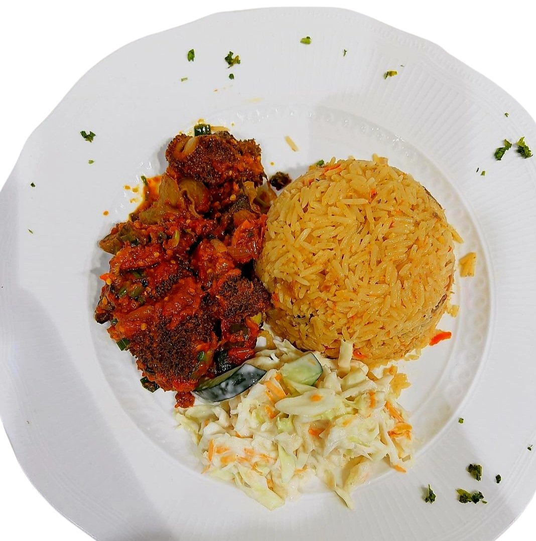 Indulge in Coconut Milk-Infused Rice, Enriched with Local Spices – Perfectly Paired with Your Choice of Meat.